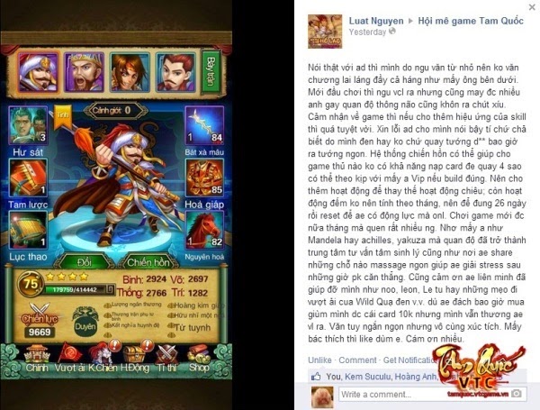 Fanpage: https://www.facebook.com/tamquoc.vtc