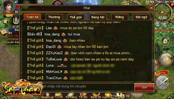 Nếu như xưa kia tin tức chỉ có thể truyền đi bằng yên ngựa qua hàng ngàn vạn dặm mới đến nơi, thì nay với Kênh chat trong thế giới thần bí Sát Thần VTC, những điều cần thông báo, trao đổi, giãi bày của các anh hùng bằng hữu sẽ được làn truyền với tốc độ nhanh nhất có thể. Người bán quảng cáo sướng miệng, người mua cũng được trao cho quyền lợi mặc sức trả giá chẳng cần nể nang ai. Đấy là cái “sướng” thứ hai.