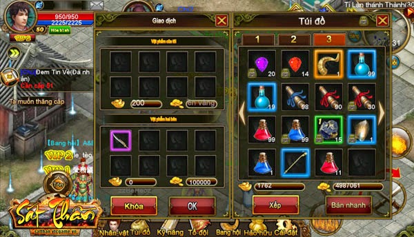 Sau khi sở hữu vật phẩm quý giá, nếu là người tinh ý và biết lựa chọn thời điểm rao bán khi hàng khan hiếm, game thủ Sát Thần VTC có thể dễ dàng trở thành đại gia tiền củ trong chớp mắt. Tha hồ rủng rỉnh tiền vàng mua đồ chất cho nhân vật, nâng cao hệ số thuộc tính chiến đấu, đánh boss đã tay, PK quyết liệt. Vừa có tiền vừa có sức, ai mà không sướng?