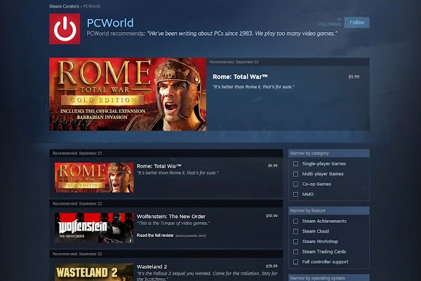 Ngoài ra, một tính năng mới đáng chú ý khác là Steam Curators – tính năng cho phép người dùng xây dựng các danh sách game được Steam gợi ý cũng như đường dẫn nhanh gọn ngay bên trong.