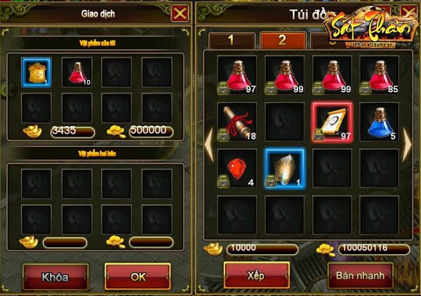 Bên cạnh việc bán các vật phẩm cho các người chơi khác, người chơi Sát Thần VTC cũng có thể bán nhanh các vật phẩm mình sở hữu ngay tại giao diện Túi đồ. Tất nhiên, giá cả từ việc bán nhanh vật phẩm sẽ không được “béo bở” như khi giao dịch giữa người chơi với nhau. Vì vậy, các thương vụ mua bán, đổi chác trong Sát Thần VTC hứa hẹn là điểm hẹn tấp nập và “thật như cuộc sống”.