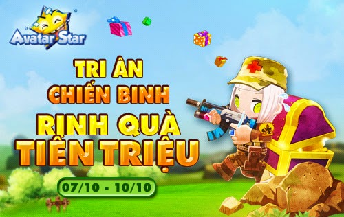 Sau gần 01 năm ra mắt, Avatar Star đang dẫn đầu xu hướng game bắn súng góc nhìn thứ 03 tại Việt Nam có gameplay thu hút, nhân vật trong game vui nhộn nhất. Và để tỏ lòng biết ơn đến các tay súng đã đồng hành suốt thời gian qua, Avatar Star đã tổ chức chuỗi sự kiện Tri ân chiến binh (từ 07/10 đến 10/10) với tổng giá trị tặng thưởng cho người chơi lên đến hàng tỷ đồng.